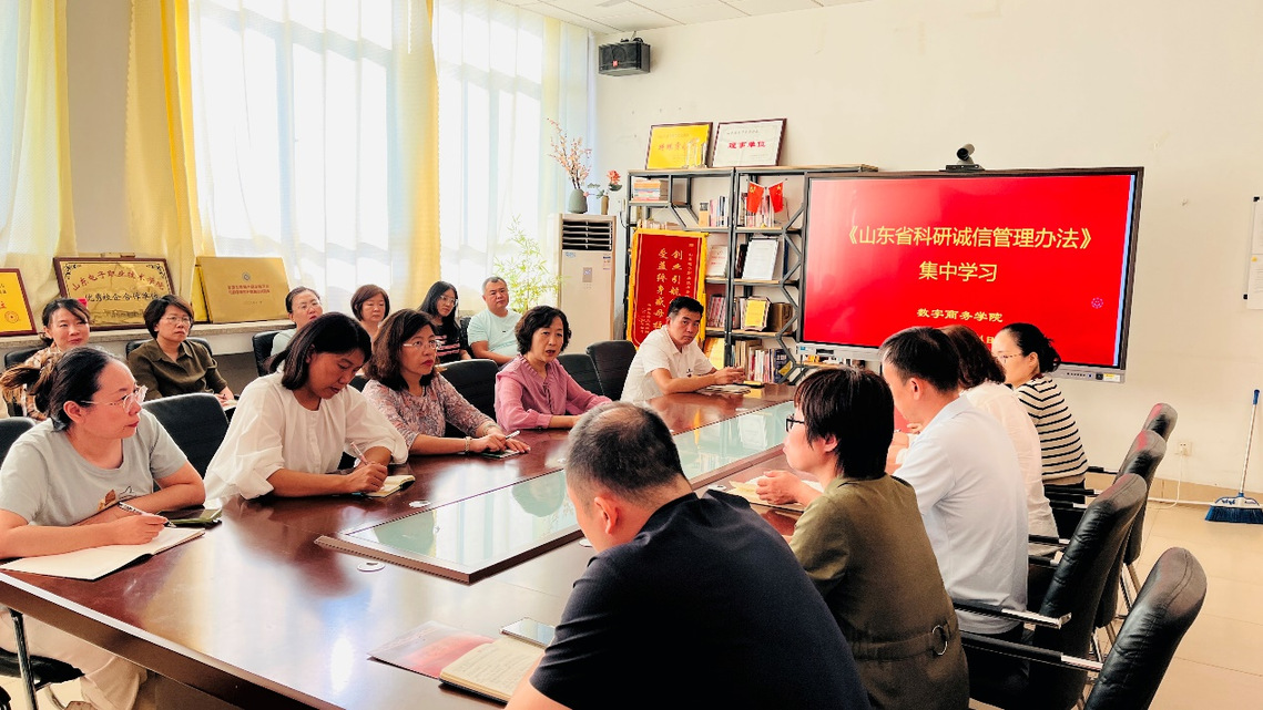 ??為深入貫徹習近平總書記關于加強科研誠信和作風學風建設的重要指示精神,進一步加強科研誠信管理體系建設,加強科研活動全流程誠信管理,提升全體教師科研誠信意識和水平,商務管理系近日組織教師在綜合樓408集中學習山東省科學技術(shù)廳等13部門聯(lián)合出臺的《山東省科研誠信管理辦法》。商務管理系全體干部和教師參加了本次集中學習活動。