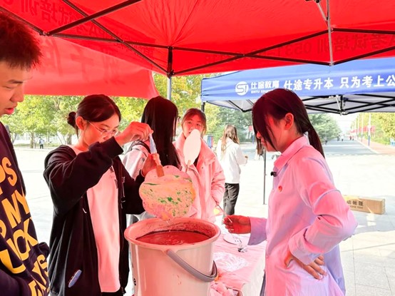 ??為繼承和發(fā)揚(yáng)中華優(yōu)秀傳統(tǒng)文化,商務(wù)管理系承辦的“傳統(tǒng)技藝展風(fēng)華,文化傳承啟新程”中華優(yōu)秀傳統(tǒng)文化體驗(yàn)活動(dòng)于10月25日在餐廳北門門前廣場(chǎng)隆重舉行,吸引了全校師生的廣泛關(guān)注與熱情參與。
