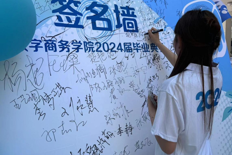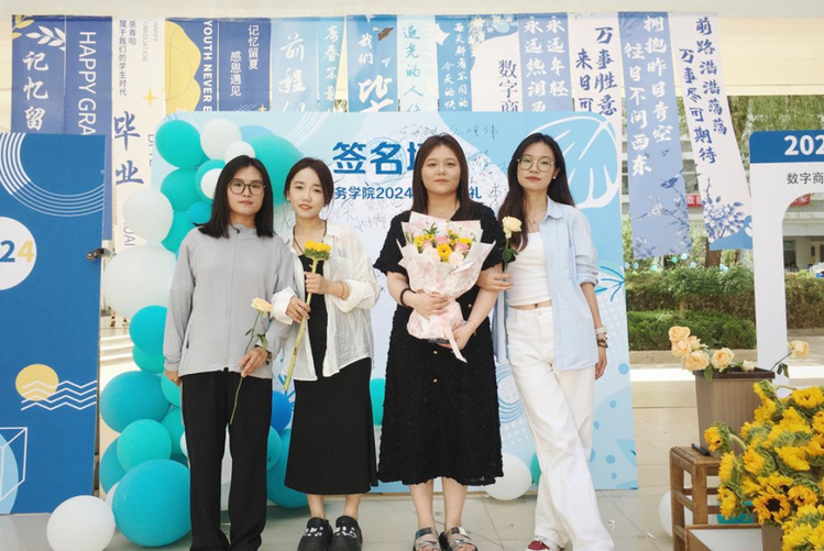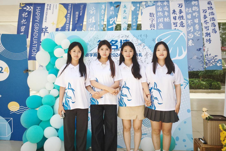 ??時光匆匆,在這個交織著離別與希望的季節(jié)里,數(shù)字商務(wù)學(xué)院為大家精心打造了一面特別的“畢業(yè)打卡墻”。這面打卡墻宛如一本記錄大學(xué)歲月的相冊,每一磚每一瓦都鐫刻著那段難忘時光的印記。駐足其前,不禁讓人回想起在圖書館里專心致志地研讀時光,那些為了理想不懈奮斗的日日夜夜,以及和同窗們共同討論、交流的溫馨畫面。