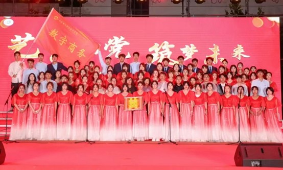 ??比賽前期,學(xué)院通過組織初賽、復(fù)賽等多輪選拔,經(jīng)過層層篩選,最終推選出兩支隊(duì)伍參加本次比賽。參賽隊(duì)伍在指導(dǎo)老師的幫助下,經(jīng)過多次討論和試唱,最終選定了《大地飛歌》和《我愛你中國(guó)》作為參賽曲目。比賽現(xiàn)場(chǎng),數(shù)字商務(wù)學(xué)院在服裝、動(dòng)作設(shè)計(jì)上別出心裁,充分加入配飾道具、手勢(shì)動(dòng)作等元素,全方位展現(xiàn)參賽隊(duì)伍特色。