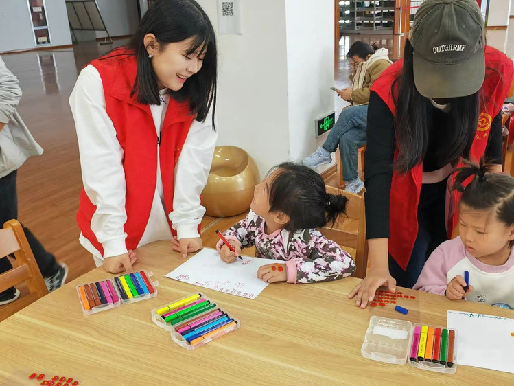 ??數(shù)字商務(wù)學(xué)院“e心興農(nóng)服務(wù)隊(duì)”青年先鋒隊(duì)于10月19日開展“開卷有e,傳承書香”青年先鋒讀繪本活動(dòng)第48期,本期活動(dòng)也是章丘圖書館少兒公益故事會(huì)第241期,《做最勇敢的自己》吸引了二十多個(gè)兒童家庭的參與。