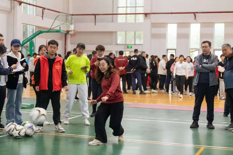 ??運動會前,教職工們紛紛進(jìn)行熱身活動,體育館內(nèi)充滿了歡聲笑語。隨著運動會正式開始,各學(xué)院教職工隊伍逐一整齊入場,一場精彩的啦啦操表演更是點燃了全場的熱情,青春洋溢的面孔、歡快的音樂和舒展的舞蹈,展現(xiàn)了教職工們的活力與風(fēng)采。
