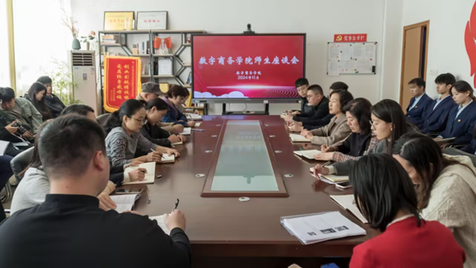 ??在期中教學(xué)檢查之際,為進(jìn)一步加強(qiáng)教學(xué)管理工作,不斷深化“雙回歸”工作成效,深入了解學(xué)生們的思想動(dòng)態(tài)和學(xué)習(xí)狀況,數(shù)字商務(wù)學(xué)院于11月5日在綜合樓408會(huì)議室召開(kāi)師生座談會(huì),商務(wù)管理系黨政干部、教研室主任、專業(yè)負(fù)責(zé)人、全體輔導(dǎo)員,以及23、24級(jí)各班學(xué)生代表參會(huì),商務(wù)管理系院長(zhǎng)李敏主持本次會(huì)議。在座談會(huì)上,學(xué)生代表積極發(fā)言,他們就課堂教學(xué)、學(xué)生管理、學(xué)習(xí)方法、專升本、教室學(xué)習(xí)環(huán)境、學(xué)業(yè)發(fā)展、學(xué)生素質(zhì)提升、食堂飲食衛(wèi)生、宿舍設(shè)施安全與環(huán)境衛(wèi)生等多個(gè)方面,提出了自己的見(jiàn)解和所遇到的問(wèn)題。各相關(guān)老師認(rèn)真傾聽(tīng)每一位學(xué)生的發(fā)言,詳細(xì)記錄他們的意見(jiàn)和建議,并針對(duì)同學(xué)們提出的每個(gè)問(wèn)題均給予積極的回應(yīng)和互動(dòng)。整場(chǎng)座談會(huì)現(xiàn)場(chǎng)氣氛融洽、熱烈且有序。