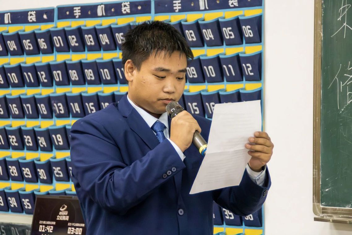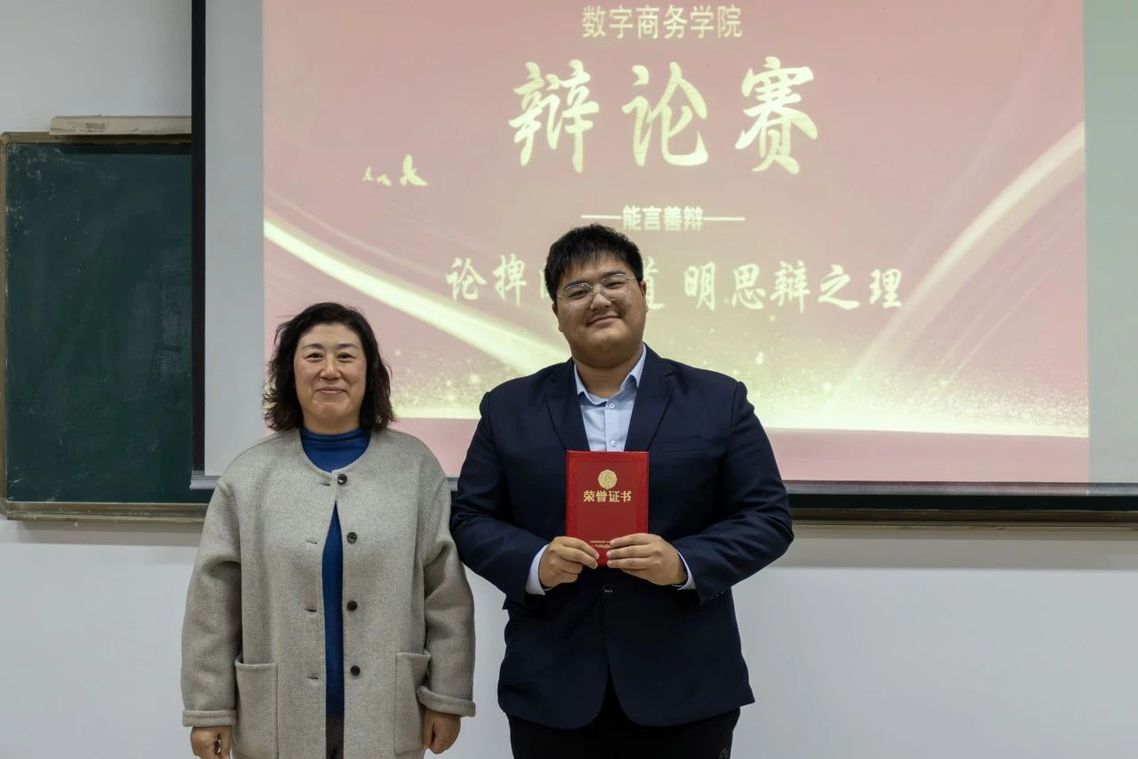 接下來就是我們本場辯論賽的頒獎環(huán)節(jié),一等獎為M24001班,二等獎為M24009班,三等獎為M24005班,由團總支書記賈子龍老師為獲獎班級頒獎。獲得整場辯論賽的最佳辯手是M24001班的鞠明睿。由黨總支副書記欒秋平老師為獲獎?wù)哳C獎。