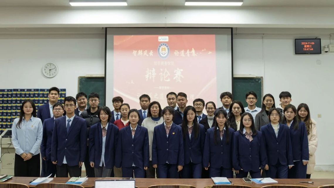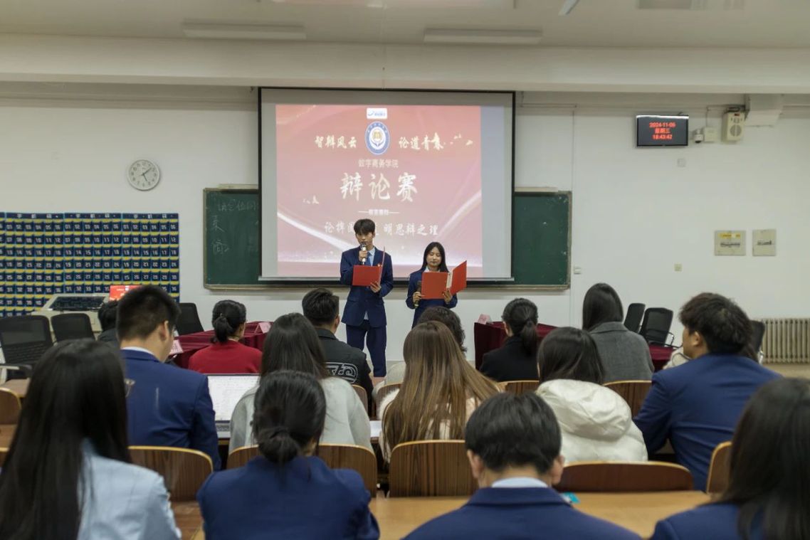 ??為激發(fā)青年學(xué)子思辯潛能、培養(yǎng)批判性思維與公共演講能力,旨在通過激烈的思維碰撞,引導(dǎo)學(xué)生深入思考社會現(xiàn)象,培養(yǎng)獨立思考與解決問題的能力的——“智辯風(fēng)云,論道青春”為主題的辯論賽決賽,于11月6日在階梯三教室拉開序幕,商務(wù)管理系黨總支副書記欒秋平、團總支書記賈子龍、全體輔導(dǎo)員老師及學(xué)生干部代表和眾多學(xué)生觀眾齊聚一堂,共同見證了這場智慧與口才的盛宴。