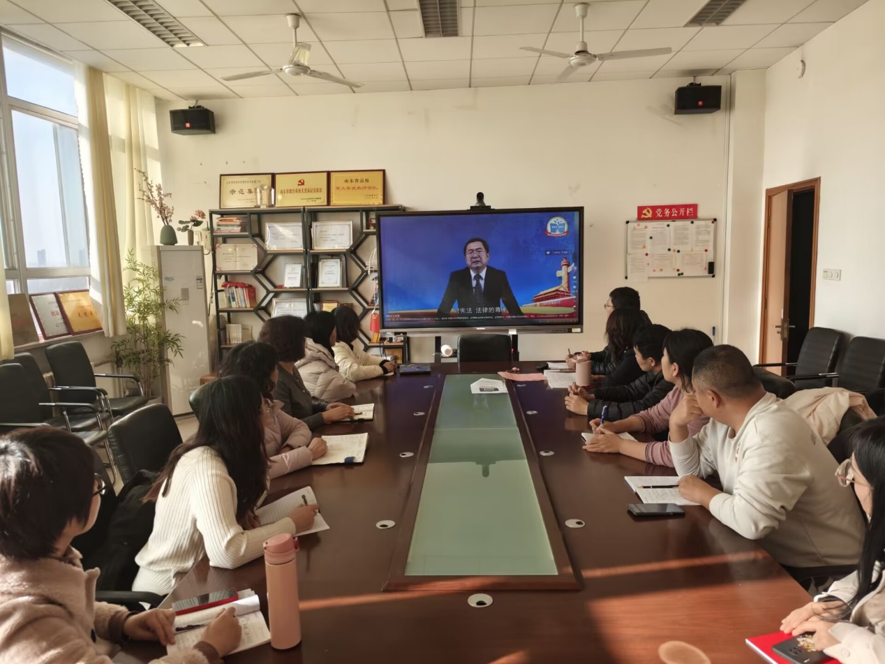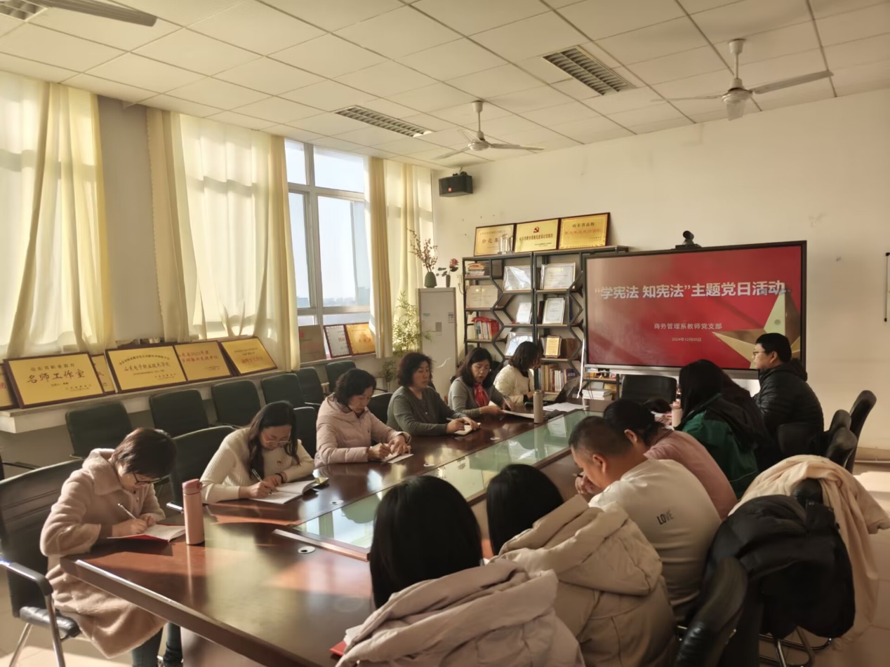 12月4日是第十一個國家憲法日。為深入學習宣傳貫徹習近平法治思想,認真學習宣傳貫徹習近平總書記關(guān)于憲法的重要講話和重要指示批示精神,進一步在黨員隊伍中普及憲法知識、弘揚憲法精神,引導(dǎo)黨員教師自覺成為憲法的忠實崇尚者、自覺遵守者、堅定捍衛(wèi)者,商務(wù)管理系教師黨支部組織開展“學憲法 知憲法”主題黨日活動。