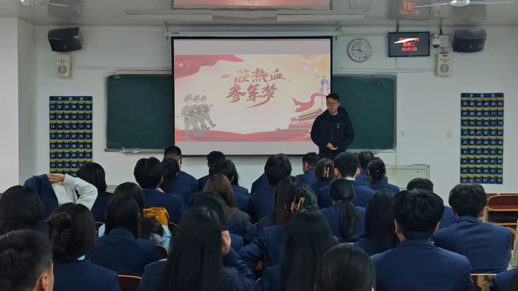 ?? 為積極響應(yīng)國(guó)家號(hào)召,進(jìn)一步激發(fā)廣大青年學(xué)子的愛(ài)國(guó)熱情與參軍報(bào)國(guó)志向,商務(wù)管理系于12月10日在3116教室舉辦征兵政策宣傳活動(dòng)。此次活動(dòng)旨在通過(guò)普及征兵政策,增強(qiáng)學(xué)生們的國(guó)防意識(shí),鼓勵(lì)更多優(yōu)秀學(xué)子投身國(guó)防事業(yè),為國(guó)家的繁榮穩(wěn)定貢獻(xiàn)力量。
