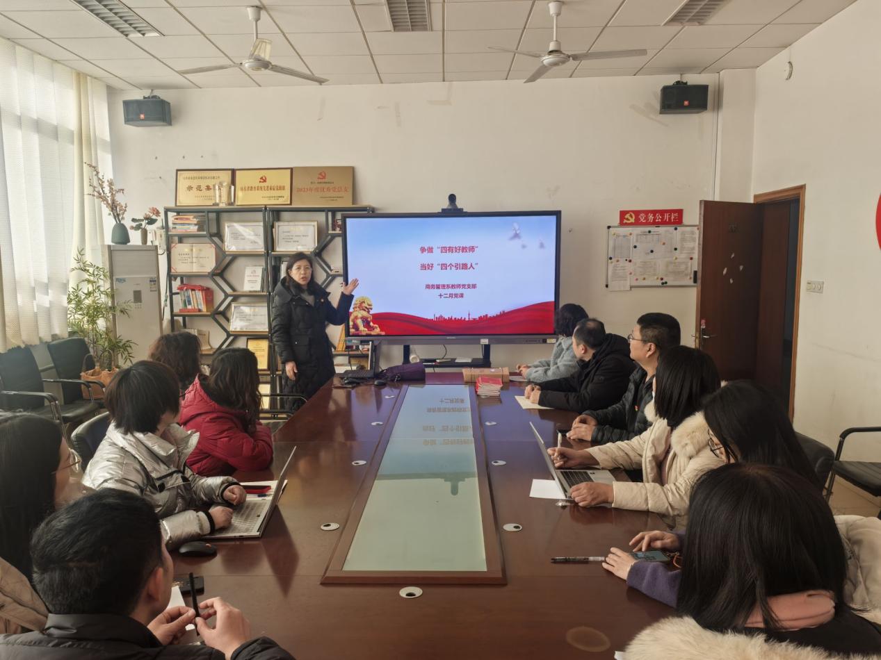 為深入貫徹落實習(xí)近平總書記關(guān)于教育的重要論述,加強商務(wù)管理系教師隊伍建設(shè),2024年12月19日,商務(wù)管理系教師黨支部成功開展了以爭做“四有好老師”、當(dāng)好“四個引路人”為主題的黨課。