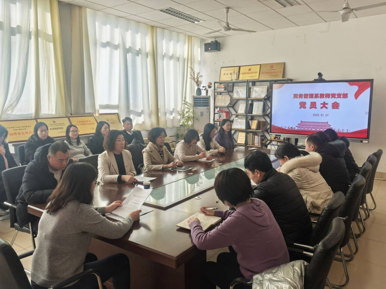 此次黨員大會不僅增強了全體黨員的政治意識和責任意識,也是新的一年工作的行動動員。新的一年,商務管理系教師黨支部將進一步加強黨風廉政建設,深化教學改革,提升教育教學質量,為學校高質量發(fā)展拼搏爭先,開啟全新篇章。擬稿人:申曉彤。