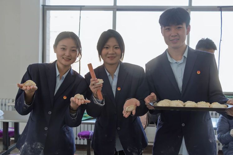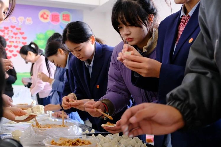 ??活動籌備期間,同學們提前抵達食堂,有條不紊地進行各項準備工作。活動現場,師生們齊聚一堂,共同參與包水餃的過程。大家分工明確,配合默契,現場氣氛熱烈而溫馨。在老師們的悉心指導下,同學們紛紛動手實踐,從搟面皮到包餃子、煮餃子,每一步都學得認真仔細。雖然初期同學們的作品形態(tài)各異,但在不斷的嘗試與實踐中,大家逐漸掌握了技巧,一盤盤圓潤飽滿的餃子逐漸成型。