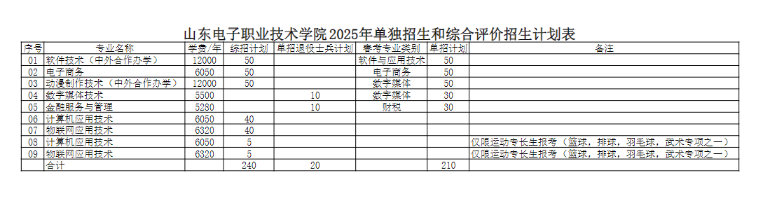 山東電子職業(yè)技術學院2025年單獨招生和綜合評價招生計劃表