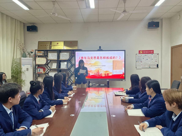 ??12月26日,商務管理系團總支在綜合樓408室開展書記讀書會,學習《青年馬克思是怎樣煉成的?》