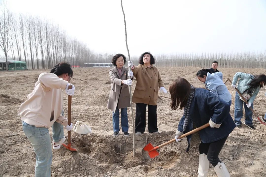 活動現(xiàn)場位于濟南北郊林場,處處洋溢著盎然生機與活力。在北郊林場技術(shù)骨干的專業(yè)指導下,參加活動的人員迅速投入到緊張而有序的植樹活動中。大家分工協(xié)作、配合默契,用心種植每一株樹苗,整個現(xiàn)場呈現(xiàn)出一片勞動景象,歡聲笑語回蕩在田間樹林,成為春日里一道亮麗的風景線。
