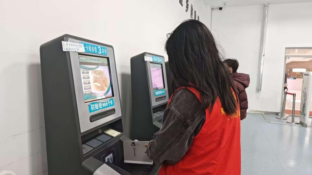 在自助借還機(jī)前,志愿者們熱情地為讀者提供幫助,耐心解答疑問,指導(dǎo)他們使用設(shè)備完成借還書操作。志愿者們用真誠的微笑和細(xì)致的服務(wù),讓讀者感受到便捷與溫暖,贏得了大家的一致好評。