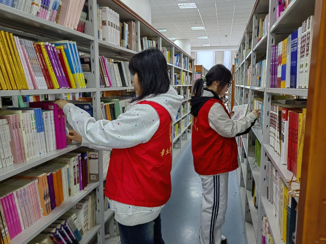 在書架間,志愿者們認(rèn)真整理書籍,將歸還的圖書分類上架,確保每一本書都能準(zhǔn)確歸位。他們動作嫻熟,耐心細(xì)致,讓原本略顯凌亂的書架變得井然有序,為讀者營造了整潔舒適的閱讀環(huán)境。