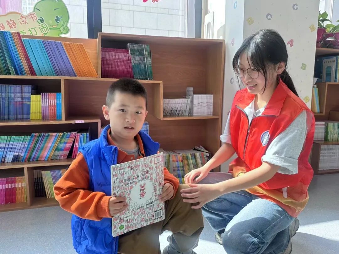 踏入兒童閱覽區(qū),志愿者們瞬間化身為暖心的“閱讀引路人”。他們微微屈膝,溫柔且輕聲地和小朋友們交談,悉心探尋著孩子們的閱讀偏好,隨后親自引領(lǐng)他們找到喜愛(ài)的繪本。閱讀時(shí),志愿者們以靈動(dòng)的語(yǔ)調(diào)、夸張又形象的肢體語(yǔ)言,把書(shū)中故事鮮活地展現(xiàn)出來(lái),讓孩子們深深沉醉其中。