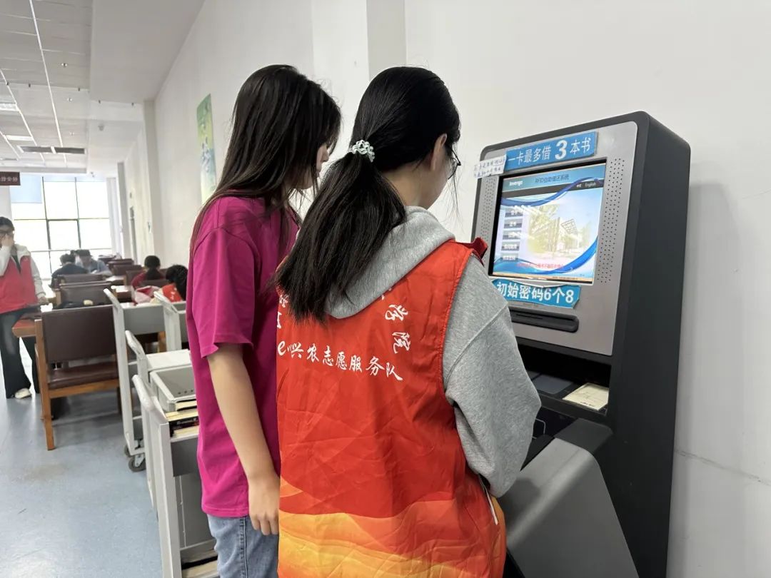 除了整理書(shū)架和講解繪本,志愿者們還積極幫助讀者借閱書(shū)籍。他們熱情地接待每一位前來(lái)咨詢的讀者,耐心地解答他們關(guān)于借閱流程、書(shū)籍位置等方面的問(wèn)題。對(duì)于一些不太熟悉自助借閱設(shè)備的讀者,志愿者們手把手地教他們?nèi)绾尾僮鳎瑥膾呙鑸D書(shū)條碼到完成借閱手續(xù),每一個(gè)步驟都講解得細(xì)致入微。在志愿者們的幫助下,讀者們順利地借到了自己心儀的書(shū)籍,臉上洋溢著滿意的笑容。一位老年讀者感激地說(shuō):“這些孩子真有耐心,要不是他們幫忙,我還真不知道怎么用這機(jī)器借書(shū)呢。