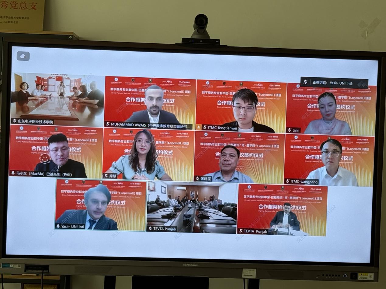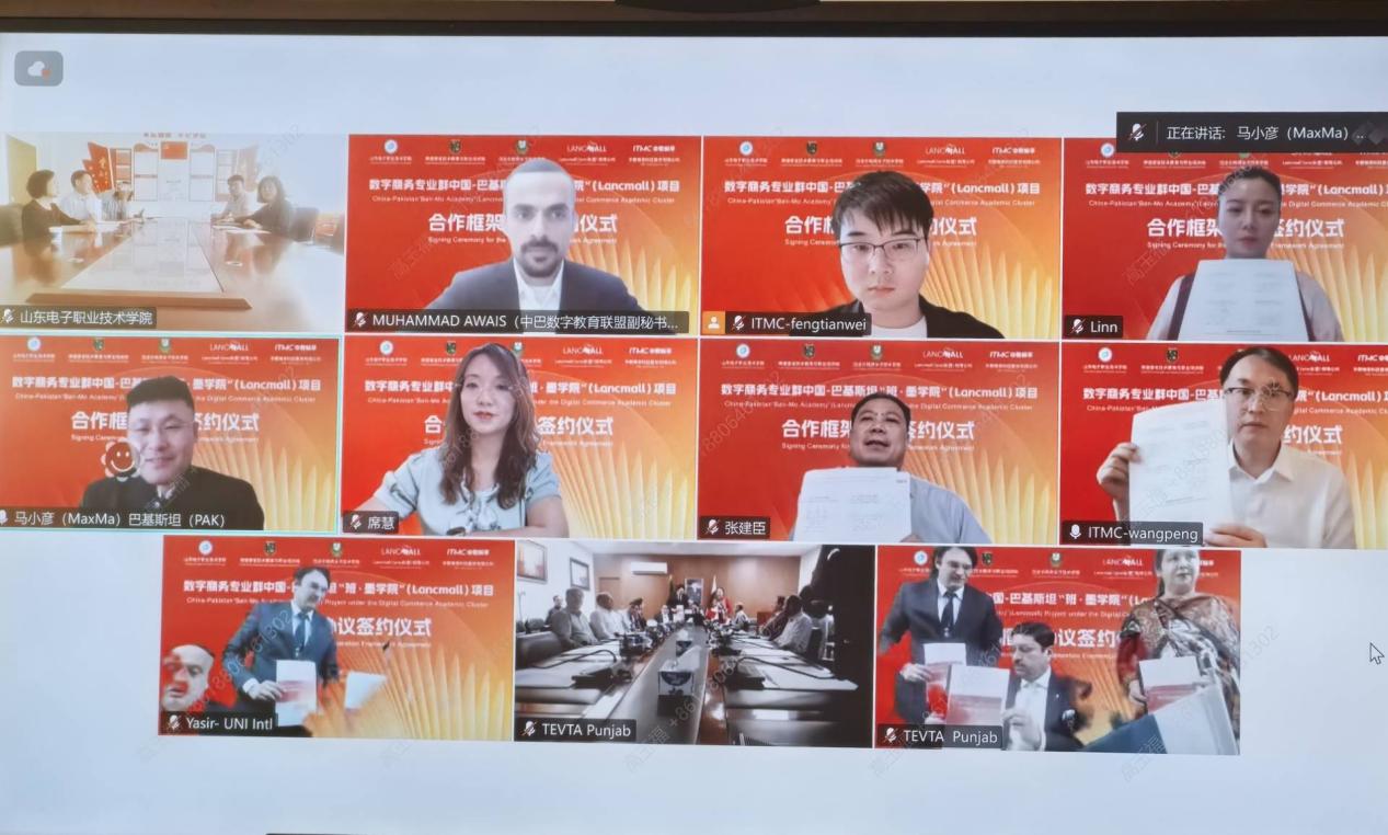 5月15日,我校與神燈科技(Lancmall)(smc私營(yíng))有限公司、旁遮普省技術(shù)教育與職業(yè)培訓(xùn)局、拉合爾政府女子技術(shù)學(xué)院、中教暢享科技股份有限公司簽署數(shù)字商務(wù)專業(yè)群中國(guó)-巴基斯坦“班·墨學(xué)院”(Lancmall)合作框架協(xié)議。