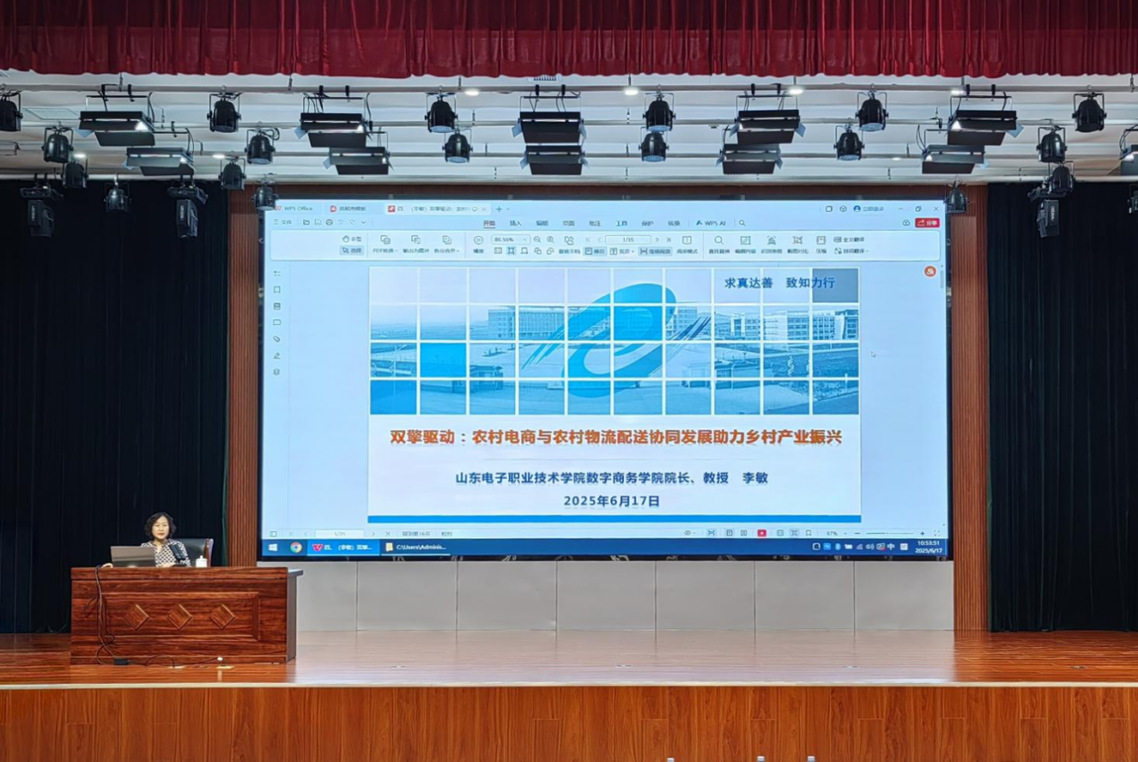 在科技成果路演環(huán)節(jié),李敏以《雙擎驅(qū)動:農(nóng)村電商“人才鏈”與智能物流柜的產(chǎn)教融通實踐》為題,向與會領(lǐng)導(dǎo)、專家和企業(yè)家作主題分享。李敏表示,隨著鄉(xiāng)村振興戰(zhàn)略深入實施和數(shù)字經(jīng)濟蓬勃發(fā)展,農(nóng)村電商已成為推動縣域經(jīng)濟發(fā)展的重要引擎,然而專業(yè)人才匱乏和末端物流效率低下仍是制約農(nóng)村電商發(fā)展的關(guān)鍵瓶頸。針對這一問題,李敏詳細(xì)介紹其主持的省科技重點攻關(guān)類科研項目研究成果,分享了多年來的創(chuàng)新探索與實踐成效。