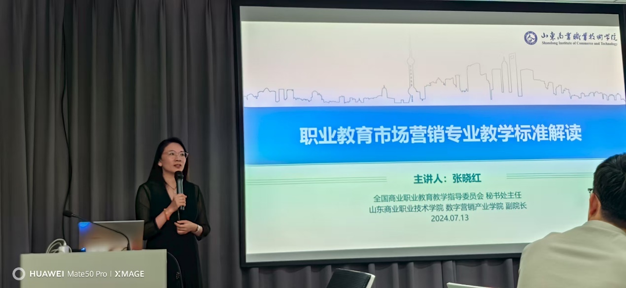 山東商業(yè)職業(yè)技術學院數(shù)字營銷產(chǎn)業(yè)學院副院長張曉紅以職業(yè)教育國家專業(yè)教學標準為依據(jù),對市場營銷專業(yè)的職業(yè)面向、培養(yǎng)目標、培養(yǎng)規(guī)格進行了全面解讀,并系統(tǒng)梳理了課程設置的搭建思路。她的講解幫助參會教師更好地理解了專業(yè)教學標準的內涵和要求,為優(yōu)化課程設計、提高教學質量提供了有力指導。