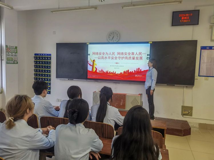 為深入貫徹“網(wǎng)絡(luò)安全為人民,網(wǎng)絡(luò)安全靠人民”的核心理念,切實(shí)提升師生網(wǎng)絡(luò)安全防范意識(shí)與技能,2025年9月17日,商務(wù)管理系在3306教室開展“書記讀書會(huì)”——網(wǎng)絡(luò)安全為人民、網(wǎng)絡(luò)安全靠人民——以高水平安全守護(hù)高質(zhì)量發(fā)展,此次讀書會(huì)旨在強(qiáng)化學(xué)生網(wǎng)絡(luò)安全意識(shí),為數(shù)字商務(wù)學(xué)院高質(zhì)量發(fā)展筑牢網(wǎng)絡(luò)安全屏障。