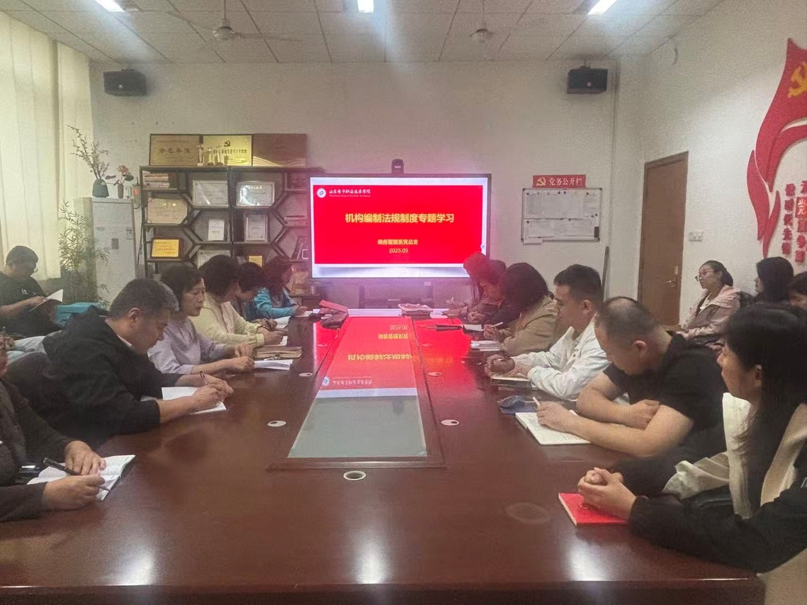 為深入貫徹落實黨中央關(guān)于機構(gòu)編制工作的決策部署,強化黨員教師的制度意識與規(guī)矩意識,9月25日,山東電子職業(yè)技術(shù)學(xué)院商務(wù)管理系黨總支組織開展了機構(gòu)編制法規(guī)制度專題學(xué)習(xí)會。本次學(xué)習(xí)由黨總支書記李敏主持并領(lǐng)學(xué),全體黨員教師參加。