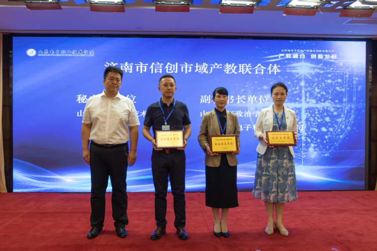 會(huì)上,舉行了“濟(jì)南市信創(chuàng)市域產(chǎn)教聯(lián)合體”成立儀式。與會(huì)領(lǐng)導(dǎo)分別為理事長單位、副理事長單位、秘書長單位、副秘書長單位授牌。