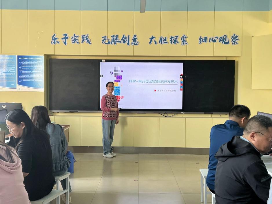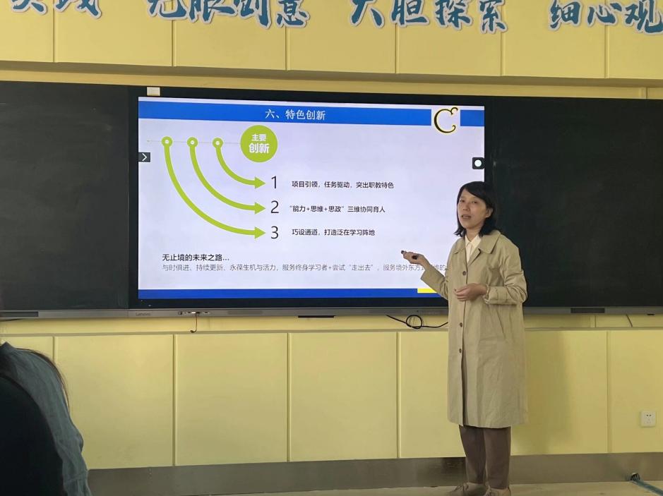 說課現(xiàn)場,黨員教師代表進行了精彩的課程展示。潘軍老師的《動態(tài)網(wǎng)站開發(fā)(PHP+MySQL)》,強調(diào)以項目驅(qū)動培養(yǎng)學(xué)生實踐能力,從課程定位到教學(xué)內(nèi)容、方法及考核,全方位展示課程體系。陳雙老師的《C語言程序設(shè)計》,作為基礎(chǔ)核心課程,注重語法與編程思維的培養(yǎng),采用理論與實踐結(jié)合的教學(xué)方式。許書君老師的《通信線路工程》針對通信專業(yè),通過現(xiàn)場、案例、模擬教學(xué)讓學(xué)生掌握工程技能。孟春艷老師的《計算機網(wǎng)絡(luò)基礎(chǔ)》則以多媒體等多種教學(xué)方法,使學(xué)生了解網(wǎng)絡(luò)知識。