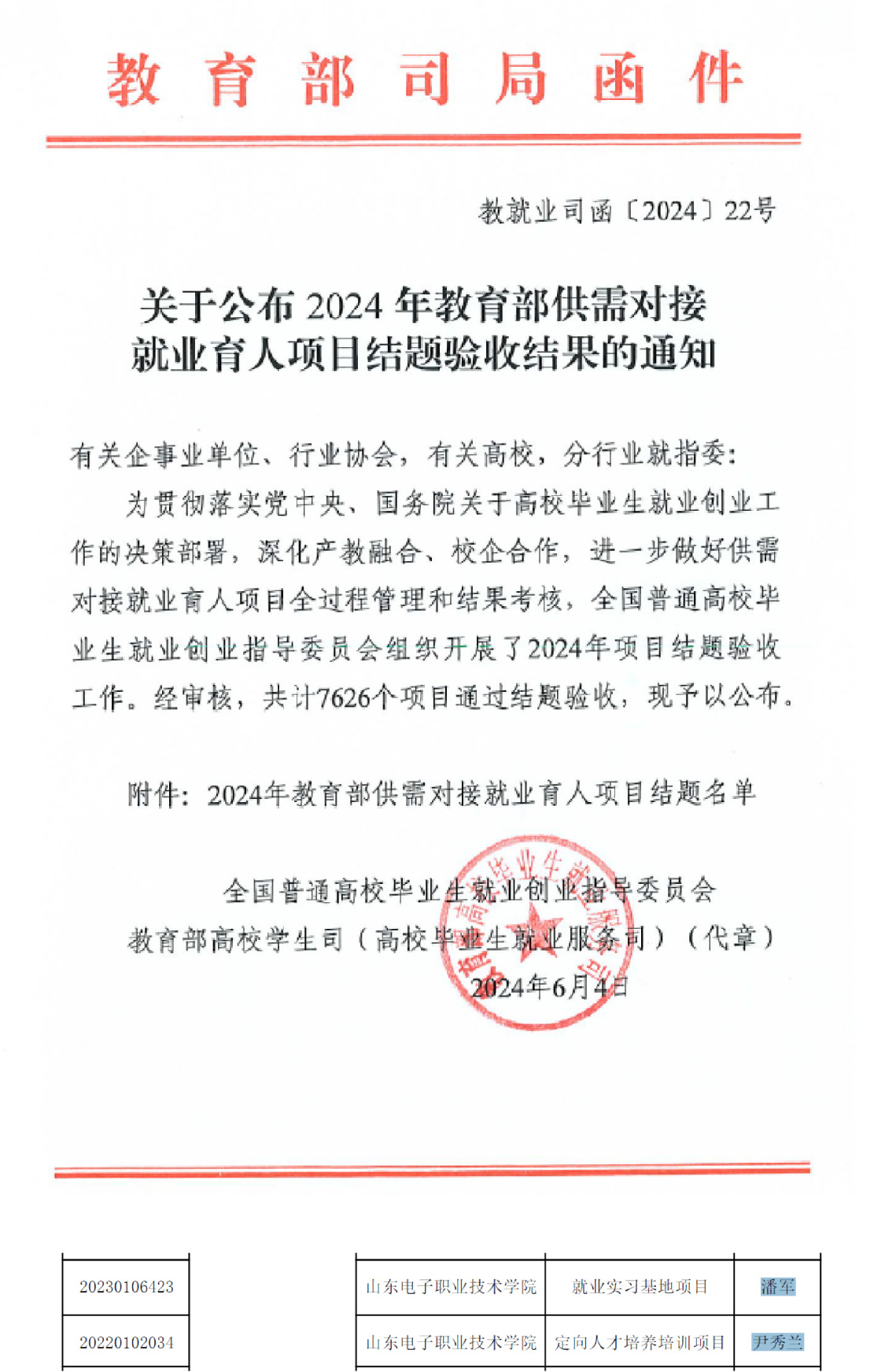 通過2024年教育部供需對接就業(yè)育人項目結(jié)題驗收(2項)