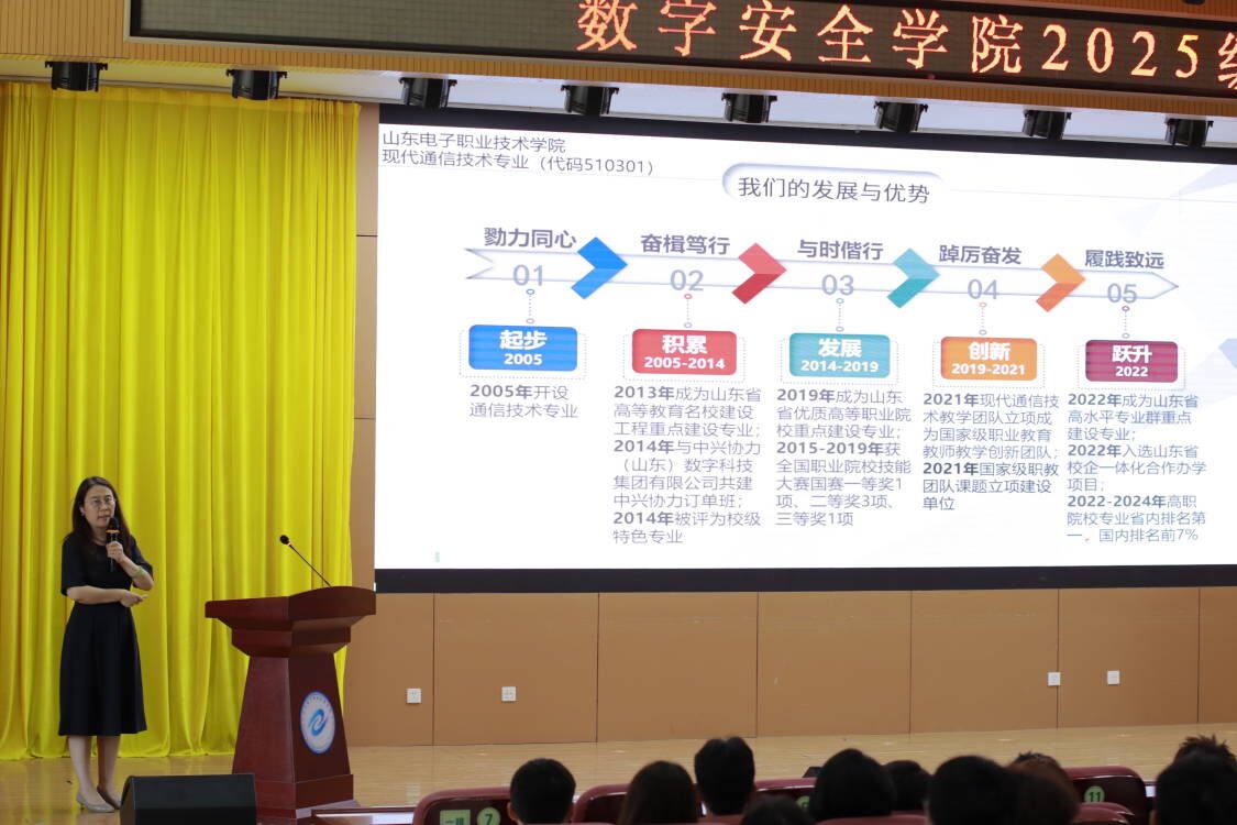 2025年9月2日中午,現(xiàn)代通信技術(shù)專業(yè) 2025 級(jí)新生專業(yè)宣講在學(xué)術(shù)報(bào)告廳舉行,杜玉紅、秦文杰、莫曉霏、林素紅、邢耀文五位老師依次分享,助力新生快速了解專業(yè)、明確方向。