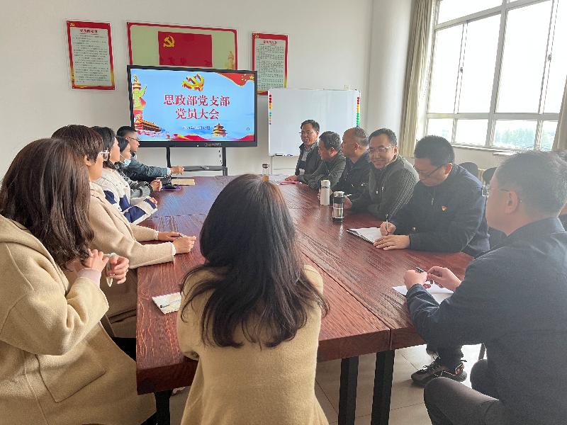 本次大會由張同勝同志主持,全體黨員參加。大會在國際歌中開幕,思政部黨支部書記張同勝代表支部委員會向黨員大會做任期工作報告,總結(jié)工作成績,分析工作不足,并對下一屆支部委員會提出建議。