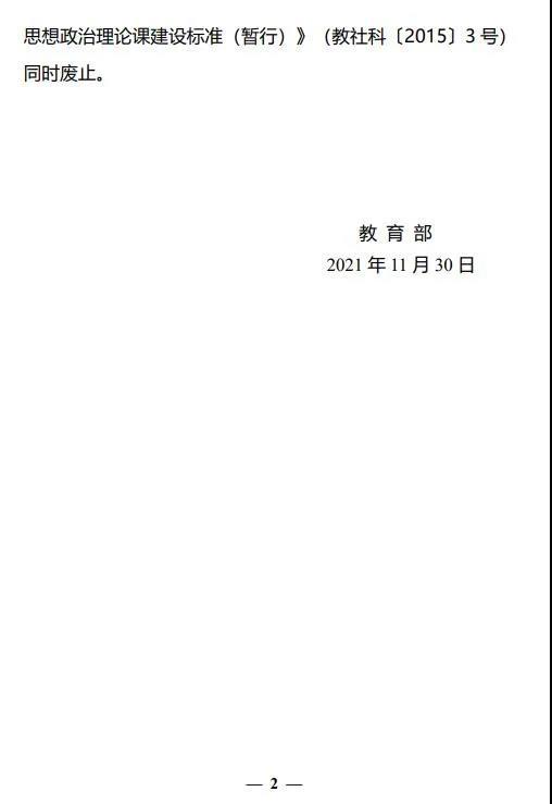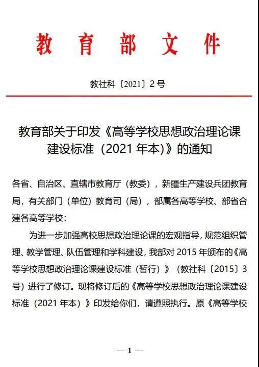 教育部關(guān)于印發(fā)《高等學(xué)校思想政治理論課建設(shè)標(biāo)準(zhǔn)(2021年本)的通知》