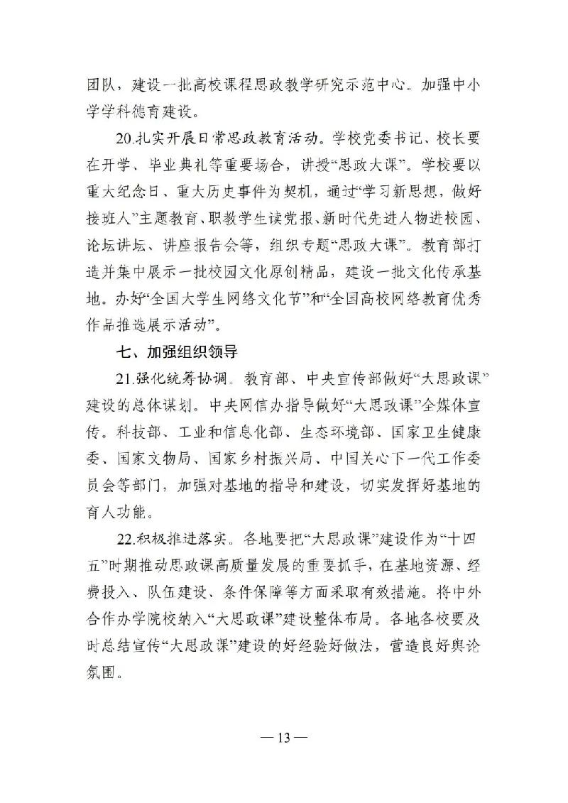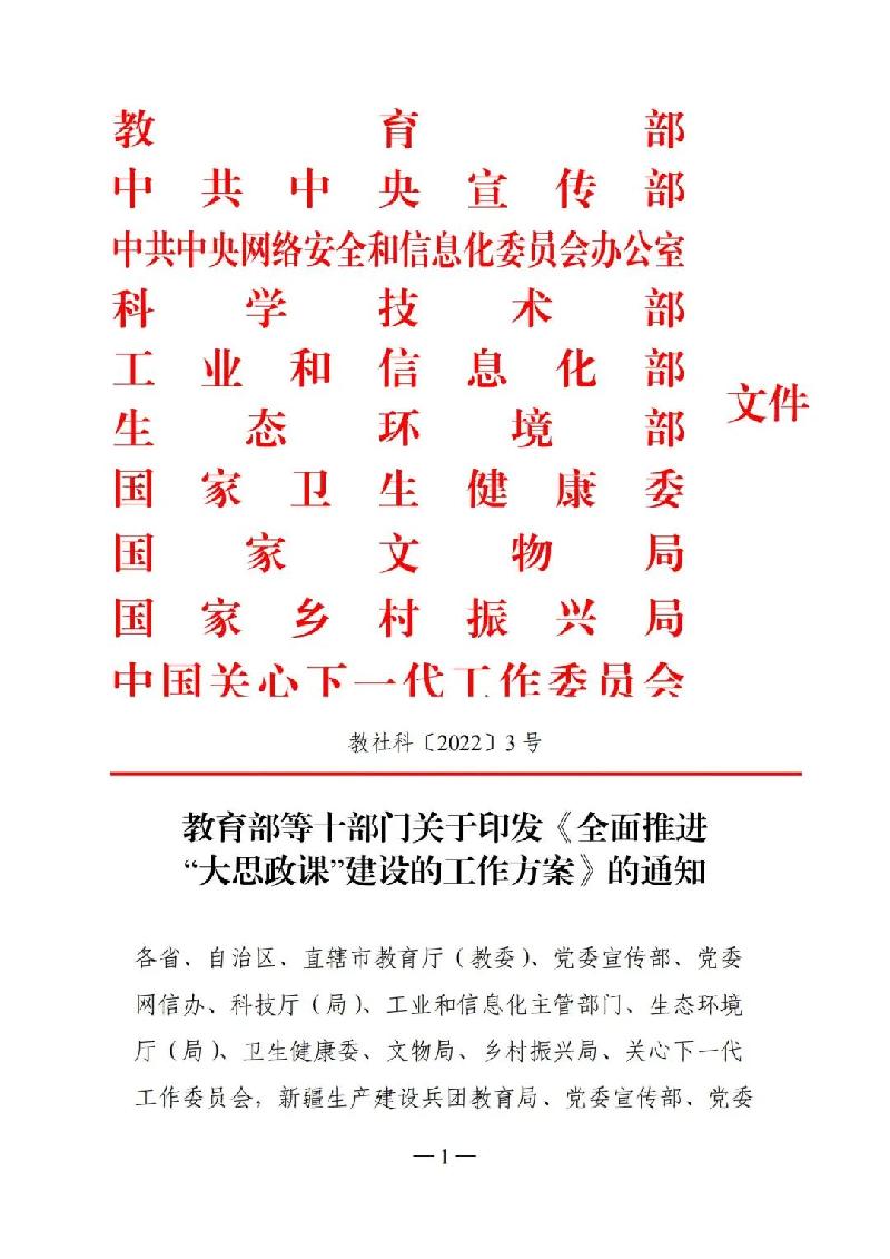 教育部等十部門關于印發(fā)《全面推進“大思政課”建設的工作方案》的通知