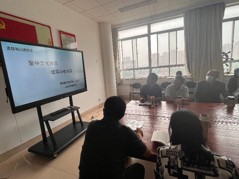 9月26日下午,思政部黨支部書(shū)記張同勝同志主講了“堅(jiān)持文化自信 譜寫(xiě)山電華章”專(zhuān)題黨課,思政部黨支部全體成員參加。