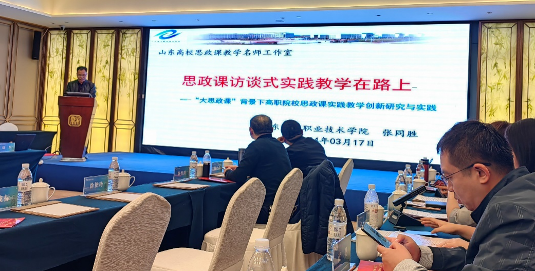 張同勝在座談會上介紹了我校思政部訪談式實(shí)踐教學(xué)的建設(shè)情況和成效。他表示,山東電子職業(yè)技術(shù)學(xué)院思政部在學(xué)校黨委領(lǐng)導(dǎo)下,認(rèn)真落實(shí)習(xí)近平總書記提出的八個“相統(tǒng)一”要求,推動思政課教學(xué)改革創(chuàng)新,推行訪談式實(shí)踐教學(xué)。十年來,思政部把思政小課堂同社會大課堂結(jié)合起來,對校優(yōu)秀教師、優(yōu)秀校友、社會人士等進(jìn)行師友訪談,編著訪談錄《榜樣的力量》;充分發(fā)掘社會資源,建立三澗溪村等“思政教育教學(xué)實(shí)踐基地” 13處,聘請高淑貞等“思政教育導(dǎo)師”35人,開展思政課實(shí)踐教學(xué)活動;以校村合作共建為突破口,創(chuàng)建“行走的黨建”,將思政課與鄉(xiāng)村振興、黨的建設(shè)緊密融合,促進(jìn)“大思政課”建設(shè)落實(shí)到位。