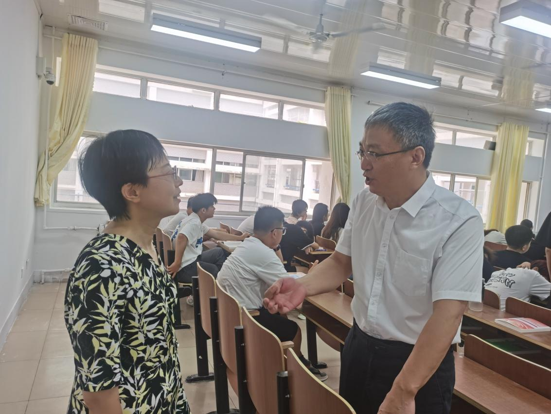 新學期,姜巖老師“開學第一課”的內容是《讀懂2024暑期里的“中國故事”》。聽課過程中,畢書記認真記錄教師的授課內容、教學重點難點,細心觀察同學們的精神風貌和學習狀態(tài)。聽課結束后,畢書記與授課教師、思政部負責人親切交流,并做了認真、細致的點評——姜巖老師講授精神飽滿,教學內容豐富精彩, 富有啟發(fā)性、教育性和感染力。畢書記對授課教師的教學態(tài)度、教學效果等都給予了充分肯定,同時對思政部教師如何進一步提高思政課教學水平、增強教學針對性提出了指導性的意見和建議。