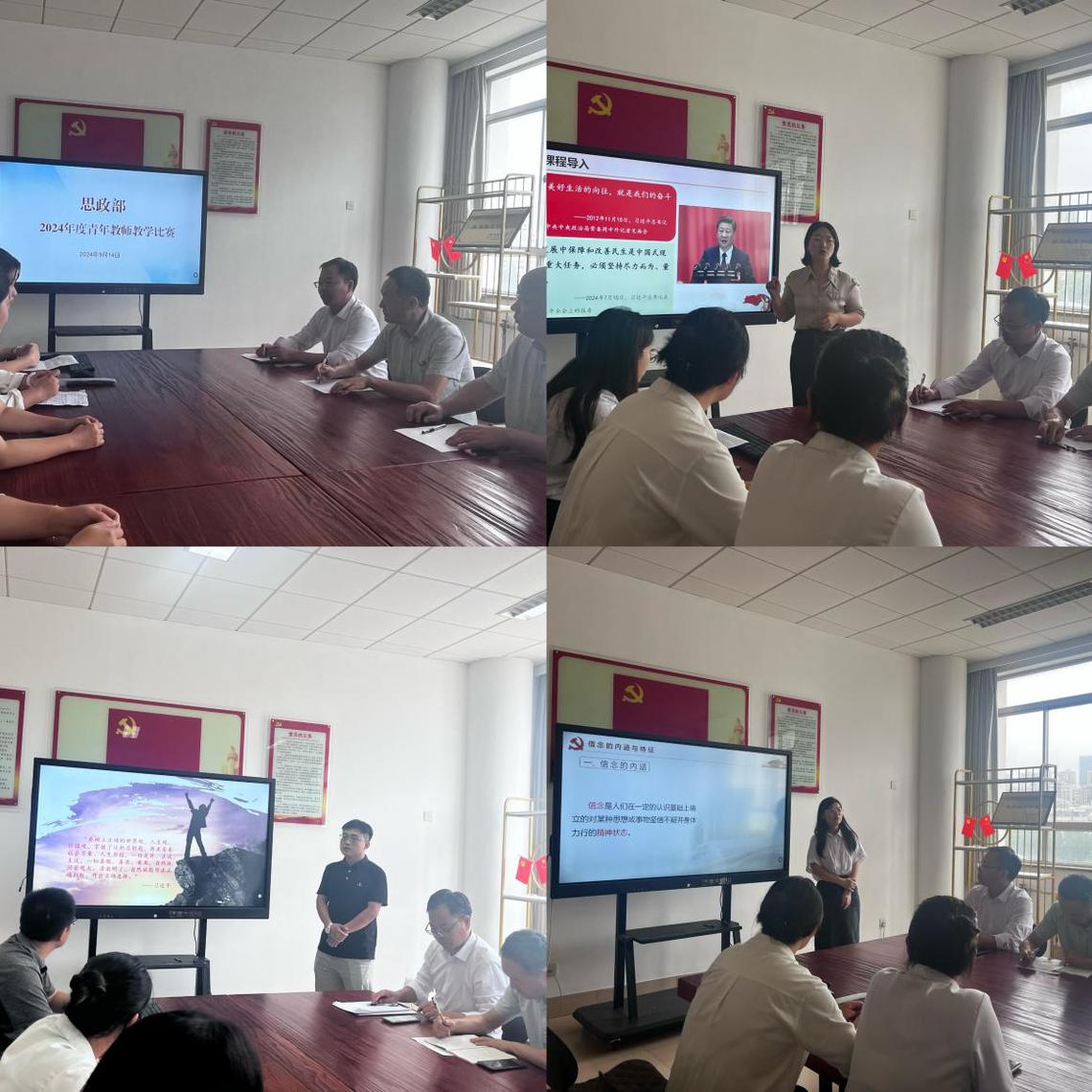 為持續(xù)打造一支高質(zhì)量的青年教師隊伍,激發(fā)廣大教師講好思政課的積極性、主動性、創(chuàng)造性,不斷提升思政課教師教育教學(xué)水平,結(jié)合學(xué)校關(guān)于開展2024年度校級青年教師教學(xué)比賽的通知要求,9月14日上午,我校思政部組織青年教師開展青年教師教學(xué)比賽。