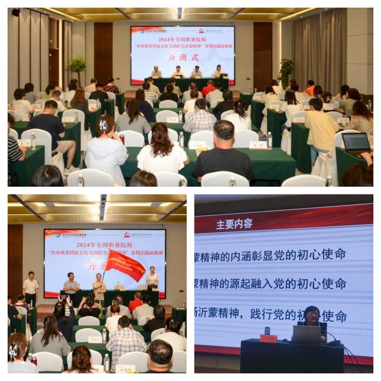 為全面落實(shí)新時(shí)代學(xué)校思政課建設(shè)推進(jìn)會(huì)部署要求,扎實(shí)推動(dòng)職業(yè)院校“大思政課”建設(shè)高質(zhì)量發(fā)展,7月15日至7月21日,由山東電子職業(yè)技術(shù)學(xué)院主辦,沂蒙精神教育培訓(xùn)中心協(xié)辦的2024年全國(guó)職業(yè)院校“傳承優(yōu)秀傳統(tǒng)文化 弘揚(yáng)紅色沂蒙精神”暑期實(shí)踐研修班成功舉辦。來(lái)自全國(guó)12個(gè)省市、21所職業(yè)院校的65名思政課教師參加活動(dòng)。