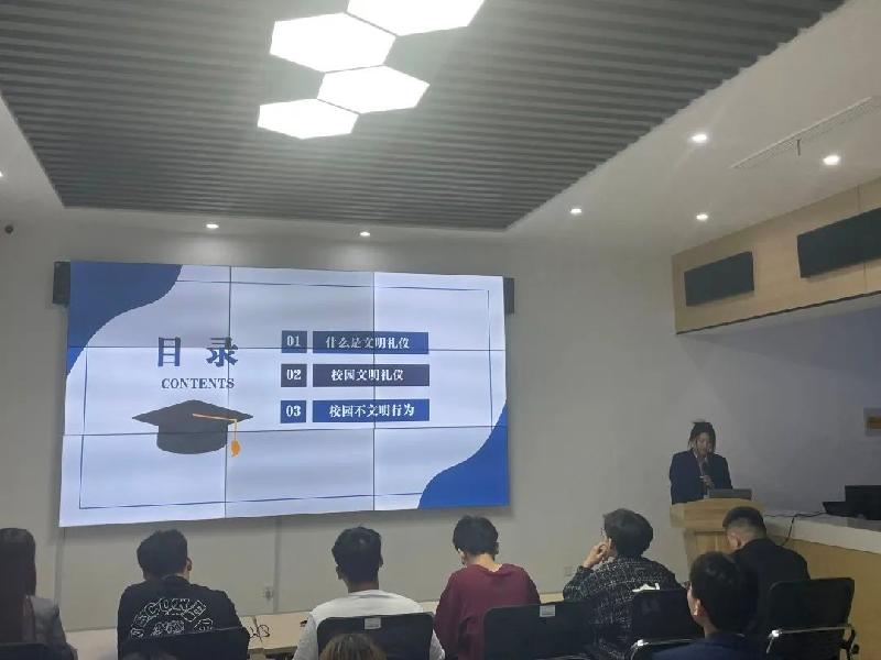 為加強校園文明建設(shè),增強學生文明意識,營造文明,和諧的育人環(huán)境,易班學生工作站于4月27日舉行文明禮儀宣講答辯比賽,S22003薛竣勻同學參加。