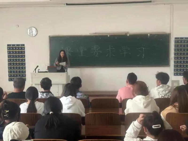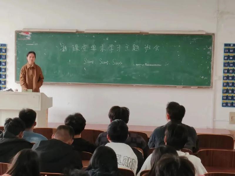 為了加強(qiáng)和改進(jìn)大學(xué)生課堂秩序,培養(yǎng)班集體榮譽(yù)感。我系于10月13日在階梯一階梯三教室開展新課堂要求主題班會(huì),新生輔導(dǎo)員敬靜老師,邊慧瀟老師主持本次班會(huì),全體23級(jí)同學(xué)參加。