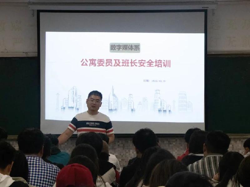 為進(jìn)一步提高公寓安全管理,提高公寓質(zhì)量,保障公寓安全,數(shù)字媒體系于10月19日在2217教室開(kāi)展公寓委員及班長(zhǎng)安全培訓(xùn)工作。本次會(huì)議由王宇老師主講,23級(jí)公寓委員積極參加。