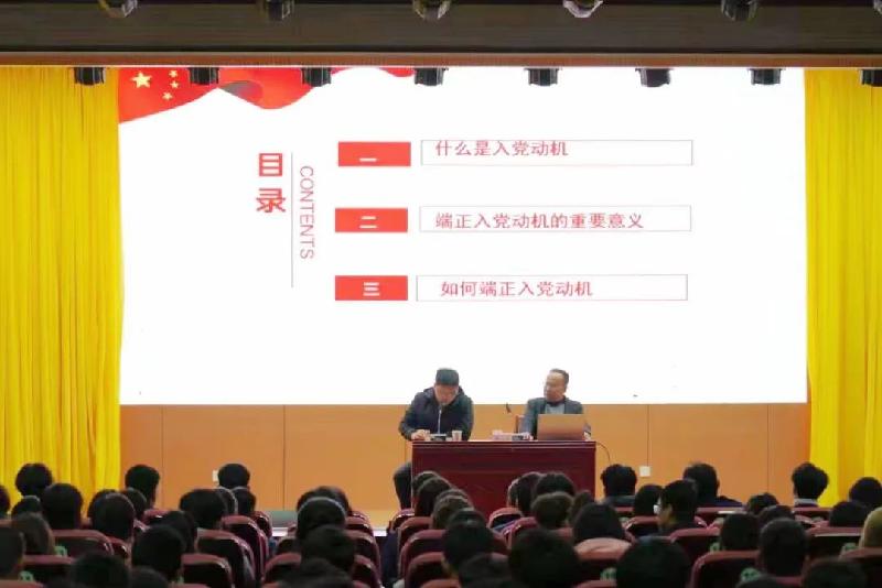 本次黨課主要從端正入黨態(tài)度敘述了入黨積極思想。邢書記表示正確的入黨的動機(jī)是全心全意為人民服務(wù),第一,加強(qiáng)黨的理論的學(xué)習(xí),為正確的入黨動機(jī)奠定基礎(chǔ)。第二,通過實踐鍛煉,不斷端正入黨動機(jī)。第三、自覺接受黨組織的培養(yǎng)教育和考察。并強(qiáng)調(diào)同學(xué)們要重品行、作表率,立志做有理想、敢擔(dān)當(dāng)、能吃苦、肯奮斗的新時代好青年。