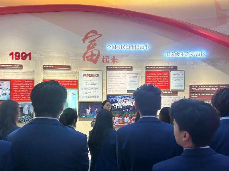 百年征程波瀾壯闊,青年一代的我們站在新時(shí)代的起點(diǎn),應(yīng)不忘初心、牢記使命,砥礪前行。在章丘區(qū)博物館,同學(xué)們?cè)诮庹f員的帶領(lǐng)下,參觀了龍山文化出土的陶器,洛莊漢墓出土的編鐘以及危山墓出土的兵馬俑,了解了星河燦爛、各領(lǐng)風(fēng)騷的文人墨客以及漫長(zhǎng)的紅色革命歷程,對(duì)龍山破曉、五脈流長(zhǎng)的章丘文化有了更深的了解,開闊了的視野,增強(qiáng)了愛國(guó)情懷。