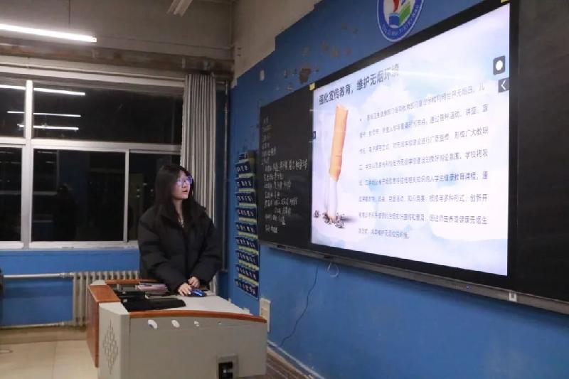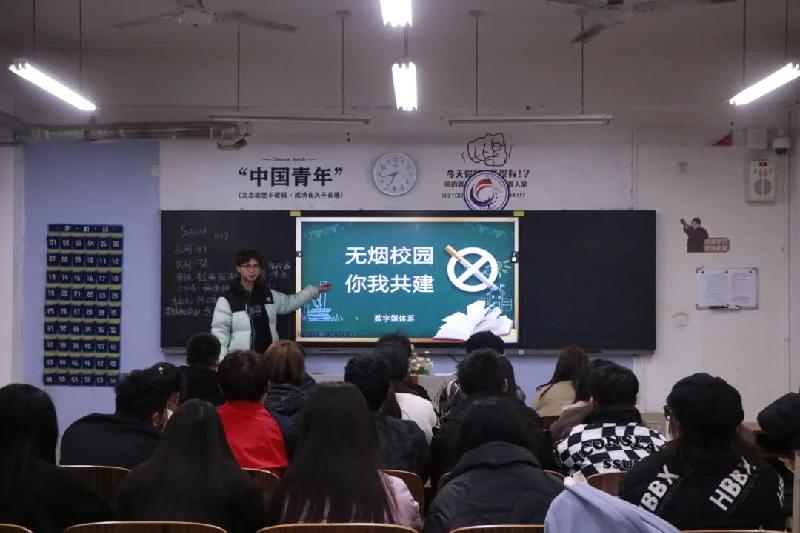 為讓同學(xué)們正視吸煙的危害,戒除吸煙陋習(xí),宣傳控?zé)煷胧瑸橥瑢W(xué)們健康成長創(chuàng)造和諧的氛圍,讓同學(xué)們有一個健康良好的身體,我系各班開展“無煙校園,你我共建”禁煙主題班會,我系23級同學(xué)全體參加。