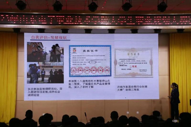 比賽分為上下兩半場,上半場為成長賽道。首先由選手借助ppt來講解自己的職業(yè)規(guī)劃的目標,成長的過程以及如何提高個人目標與求職匹配度,再由評委對選手進行提問。選手們信心滿滿的講述著各自的職業(yè)規(guī)劃,應對評委的鋒利提問對答如流。下半場為就業(yè)賽道,由選手介紹自己已經(jīng)取得的階段性成就和自我評估與調(diào)整以及崗位勝任能力,選手們一個個出類拔萃,比賽進行得如火如荼。