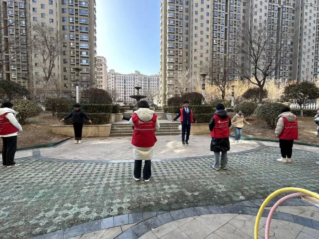 本次活動(dòng),主要有跳繩、呼啦圈等比賽項(xiàng)目,并設(shè)有獎(jiǎng)品等激發(fā)參賽者積極性。比賽開始前,志愿者和社區(qū)人員進(jìn)行熱身運(yùn)動(dòng),紛紛進(jìn)行跳繩練習(xí),為跳繩比賽做準(zhǔn)備。