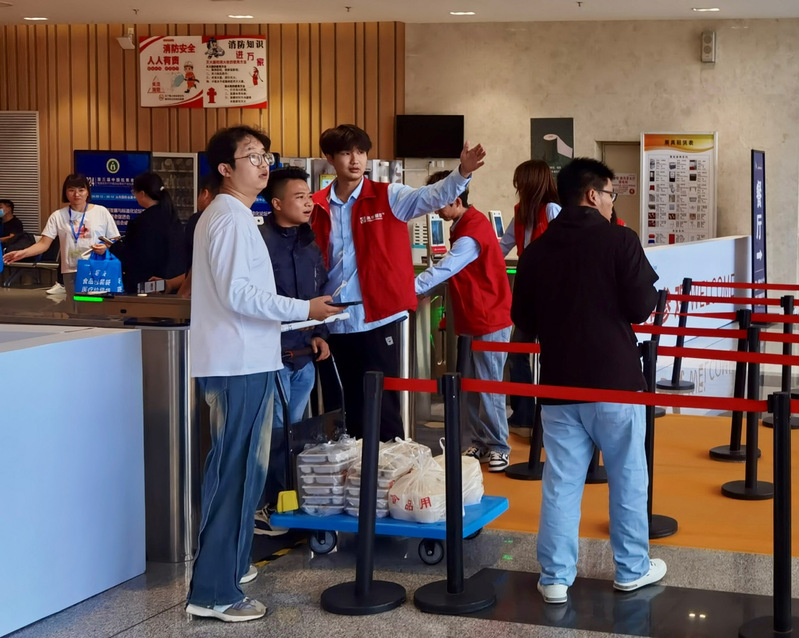 在觀眾引導(dǎo)與閘機崗位,同學(xué)們?nèi)缤珳实?/span>GPS導(dǎo)航,對展區(qū)布局了如指掌,能夠迅速為詢問的觀眾提供詳盡的指引。面對繁重的任務(wù),他們不辭辛勞,一個上午便接待了超過18000人次的觀眾。為了提升工作效率與服務(wù)品質(zhì),志愿者們自發(fā)建立了科學(xué)的崗位輪換制度,確保在繁忙時段也能保持高效有序的工作狀態(tài)。