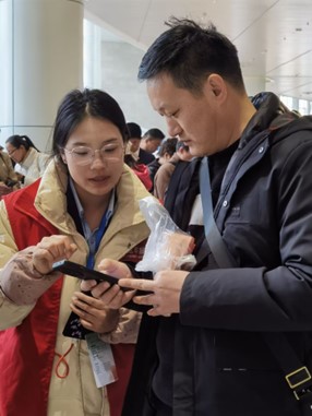 ??在面向參展商與觀眾的調(diào)研工作中,我們的志愿者們始終以十足的耐心與真誠的服務(wù)態(tài)度,細致地做好講解與引導(dǎo)服務(wù)。特別是在前往展館調(diào)研參展商時,同學(xué)們不辭辛勞,用小推車滿載著一箱箱厚重的會刊,穿梭于展館之間,始終面帶微笑,為每一位參展商提供無微不至的服務(wù)。大二同學(xué)更是以身作則,悉心指導(dǎo)大一同學(xué),強調(diào)要以積極的態(tài)度與專業(yè)的服務(wù)精神面對每一項任務(wù)。這種敬業(yè)與奉獻的精神,為展會增添了溫度,也贏得了參展商與觀眾的一致贊許。
