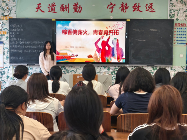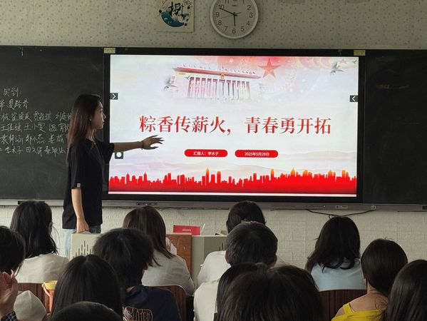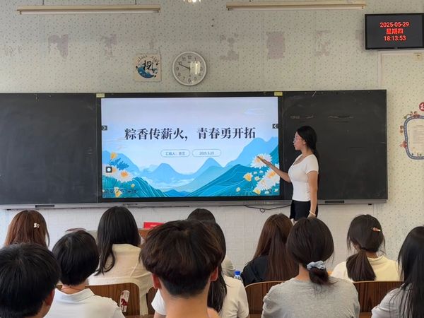 ??5月29日,學(xué)院團總支組織各班團支部開展“粽香傳薪火,青春勇開拓”主題團課。團課上,各班團支書講解端午習(xí)俗起源,從屈原的愛國精神講到伍子胥的忠肝義膽,生動闡釋了端午節(jié)蘊含的家國情懷與民族精神。此外,各班團支書還借助PPT、視頻展示等形式,介紹包粽子、賽龍舟、掛艾草等傳統(tǒng)習(xí)俗背后的文化寓意,鼓勵大家傳承和弘揚端午節(jié)所蘊含的愛國、團結(jié)、奮進的精神內(nèi)涵。在“傳統(tǒng)文化與當(dāng)代青年使命”互動環(huán)節(jié),S24017班團支書張智分享道:“端午不僅是一個節(jié)日,更是文化傳承的紐帶。我們青年一代有責(zé)任讓傳統(tǒng)文化在新時代綻放光彩。”
