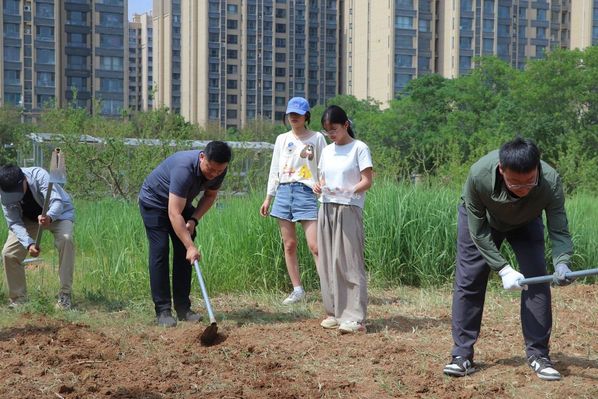 ??在玉米播種環(huán)節(jié),學(xué)校繼續(xù)教育與培訓(xùn)部黨支部蘇文燕老師為師生們現(xiàn)場(chǎng)普及玉米種植的農(nóng)業(yè)知識(shí)與種植技巧。師生們分工明確,有的負(fù)責(zé)整地松土,有的負(fù)責(zé)播撒種子,有的負(fù)責(zé)覆土澆水。每一個(gè)步驟都認(rèn)真細(xì)致,大家用心呵護(hù)著每一粒種子,期待著它們?cè)诓痪玫膶?lái)生根發(fā)芽。